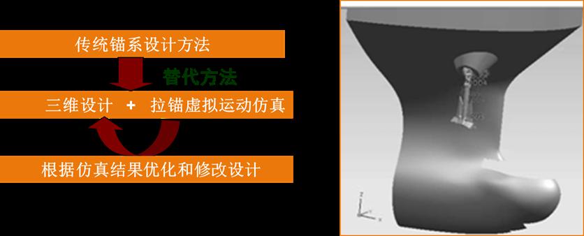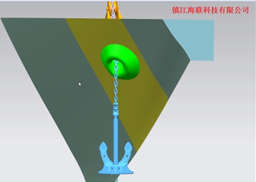 經(jīng)過與國內(nèi)行業(yè)權(quán)威設(shè)計院的合作過,并將該技術(shù)應(yīng)用于船舶建造中,對錨鏈筒、錨臺、錨唇、錨穴、錨、錨鏈、錨機、止鏈器、導(dǎo)鏈滾輪、船體等進行三維設(shè)計和自動建模,實現(xiàn)了三維錨系計,保證了錨系設(shè)計中空間位置定位的準確性,并通過三維軟件導(dǎo)出二維CAD圖紙,扭轉(zhuǎn)了一直以來二維圖紙與船廠錨系施工脫節(jié)的局面,極大提高了錨系設(shè)計的效率。除此之外,利用軟件的后期的仿真功能,模擬并預(yù)報收錨過程的動態(tài)效果并給出調(diào)整方案。